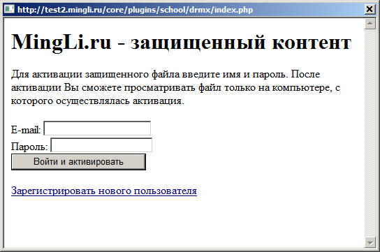 При первом открытии защищенного файла появиться окно для его активации с привязкой к устройству, где нужно будет ввести свой логин (E-mail) и пароль которые вы используете для входа на сайт Mingli.ru и нажать кнопку активировать.