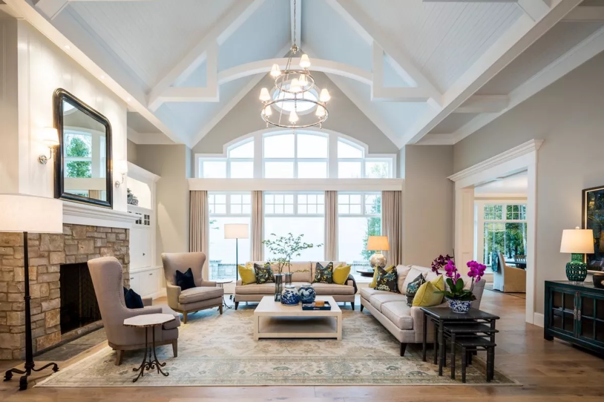 Вот здесь, например, нет ничего страшного: окно далеко, по дороге ци «прогуливается» по большой гостиной. Если вас, все-таки, смущает такая ситуация – поставьте на подоконник пышный цветок или повесьте тюль.