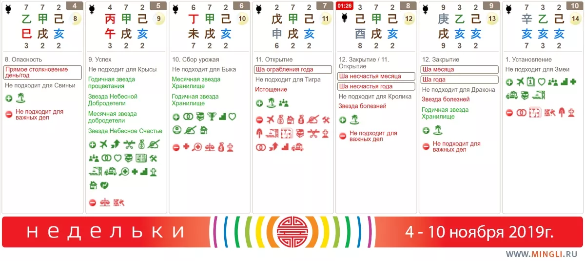 5 ноября, вторник, отличный день! Можно планировать практически любые позитивные дела, если вы не Крыса, конечно.Также ведите себя разумно, если огонь для вас неблагоприятен. День подходит для свадьбы, строительства, переезда в новый дом, путешествий, торговли, начинания бизнеса и проектов, земляных работ, похорон. Это приносит богатство, хорошую репутацию, много детей, помощников.