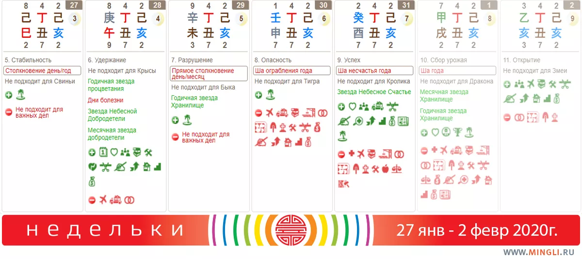 Прогноз на 27 января - 2 февраля 2020 года (прогноз фэн шуй, выбор дат, цзянь чу, )