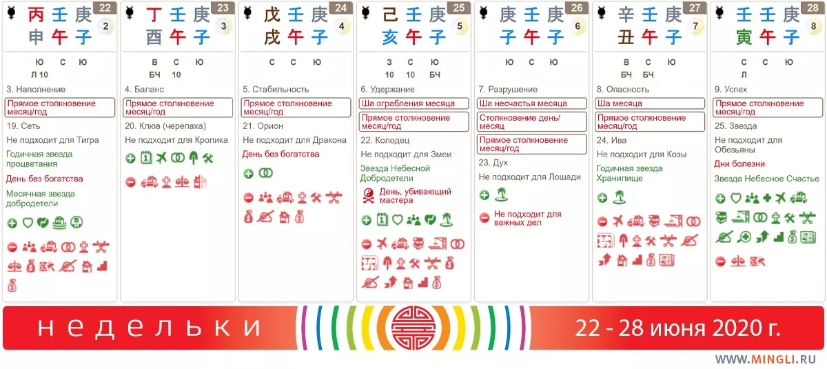 25 июня, четверг. Ша ограбления сигналит нам о том, что все еще не стоит сегодня подписывать важные финансовые документы или что-то покупать. Если вы оплачиваете что-то, есть все шансы отдать денег больше, чем требуется. Неподходящий день для начала длительных поездок; если все-таки отправились в путь - следите за деньгами и документами, припрячьте их поглубже. Фэншуисты всего мира отдыхают - сегодня день, убивающий Мастера. Слабые Земли могут попробовать заработать, но обязательно с партнером или в команде.