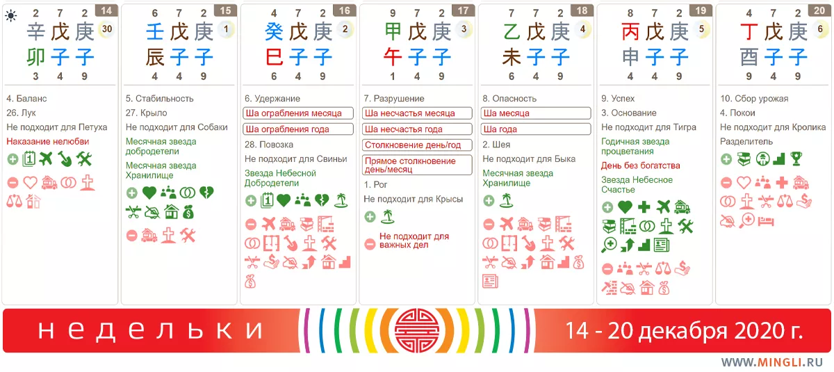 15 декабря, вторник. Хороший день: переговоры, свидания, свадьба, начало нового… Можно многое себе позволить ;) Если вы не Собака, конечно. День также подходит для ценных приобретений. Разрыв отношений - максимально нетравматичный, также возможен. Но тут лучше убедиться, что и ваши Благородные помощники и звезды Добродетели присутствуют. Например, в Персональном календаре. Будьте только внимательны: час Обезьяны сегодня - особенный. Если вам неблагоприятна Вода - не стоит выбирать его для чего бы то ни было.