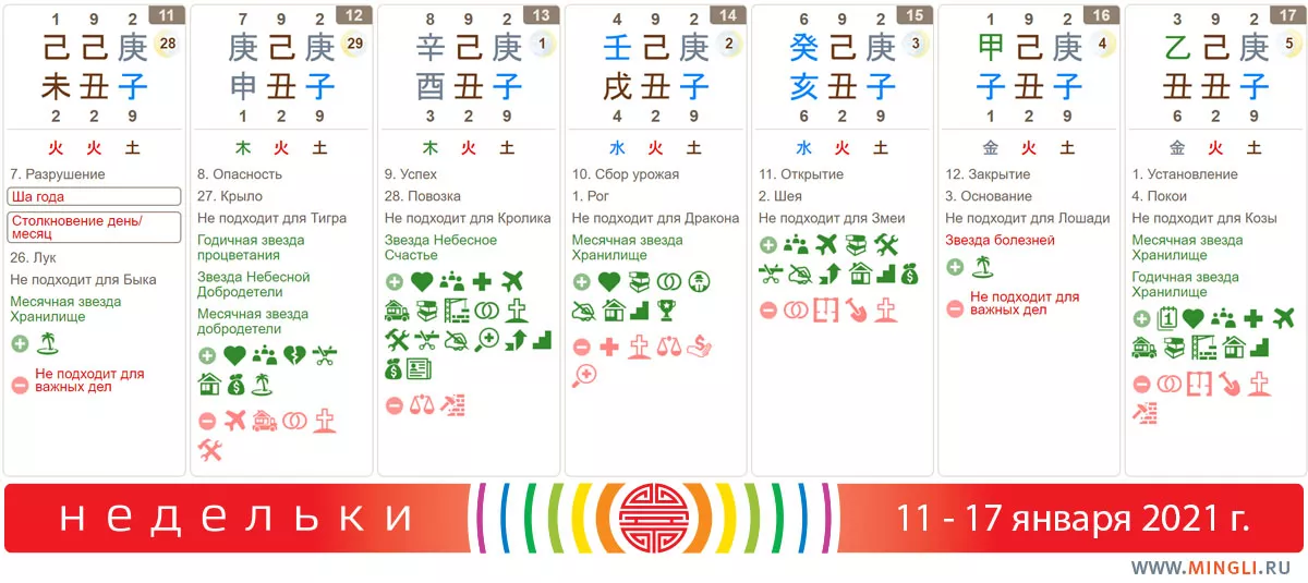 13 января, среда. Отличный день, подходит для любых активностей для всех, кроме Кроликов и тех, для кого металл не полезен. Проще сказать, что сегодня нельзя - судиться). Часы Дракона и Змеи можно использовать для различных дел, если вы знаете, как присоединиться к наинь.