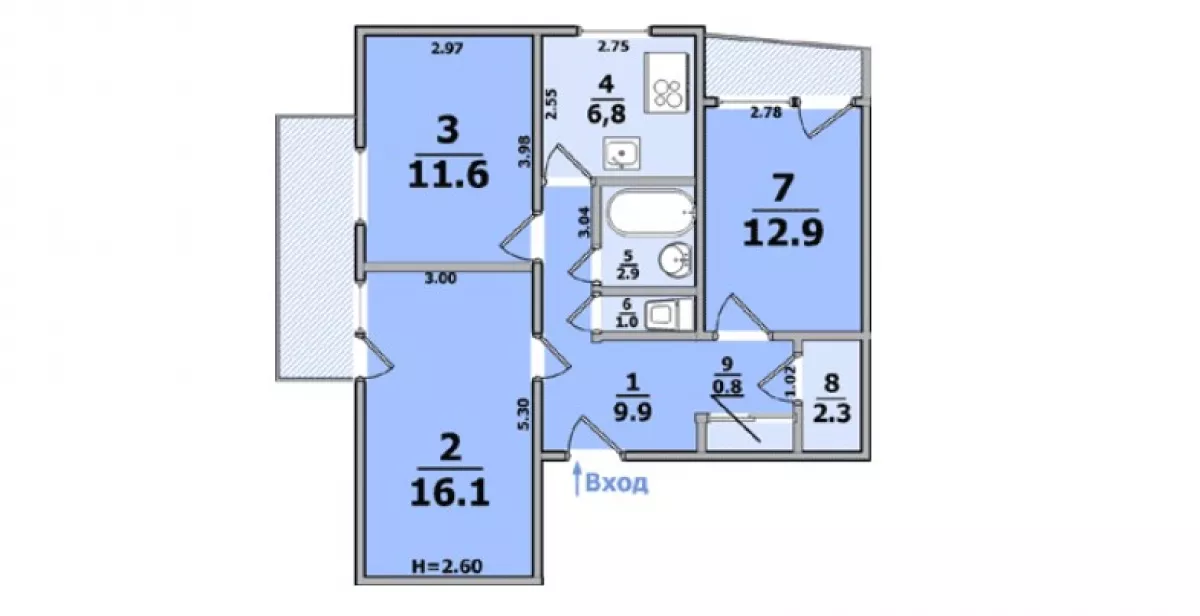 Здравствуйте! Уточните, пожалуйста, а вот при такой планировке  туалет считается по центру?