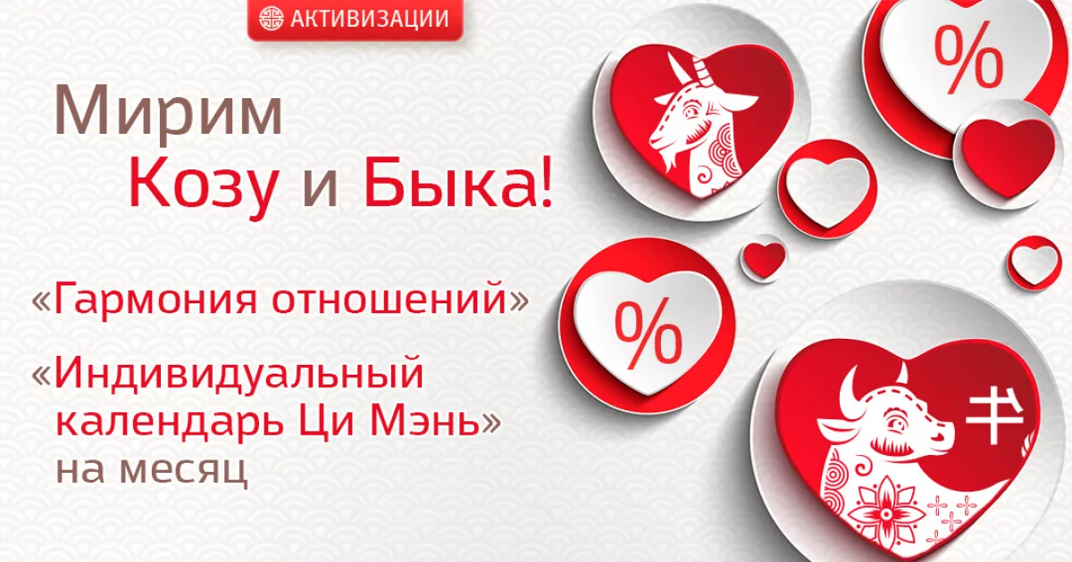 В-третьих помните, что столкновение Коза-Бык – это часто проблемные контакты, обиды, замалчивание, испорченные отношения. Постарайтесь помнить об этом и не реагировать на промахи любимых и близких слишком вспыльчиво! Сосчитайте до 10ти, подышите, а потом в максимально корректных выражениях расскажите о том, что вас беспокоит. Хороший вариант – поехать ненадолго отдохнуть отдельно. Воспользуйтесь пакетом активизаций «Гармония отношений» (мы как раз снизили на него цену 5–8 июля), если в семье не все гладко. Активизация «Помощь», кстати, также подойдет, так как в этом пакете есть активизации Благородных, смягчающих столкновения.