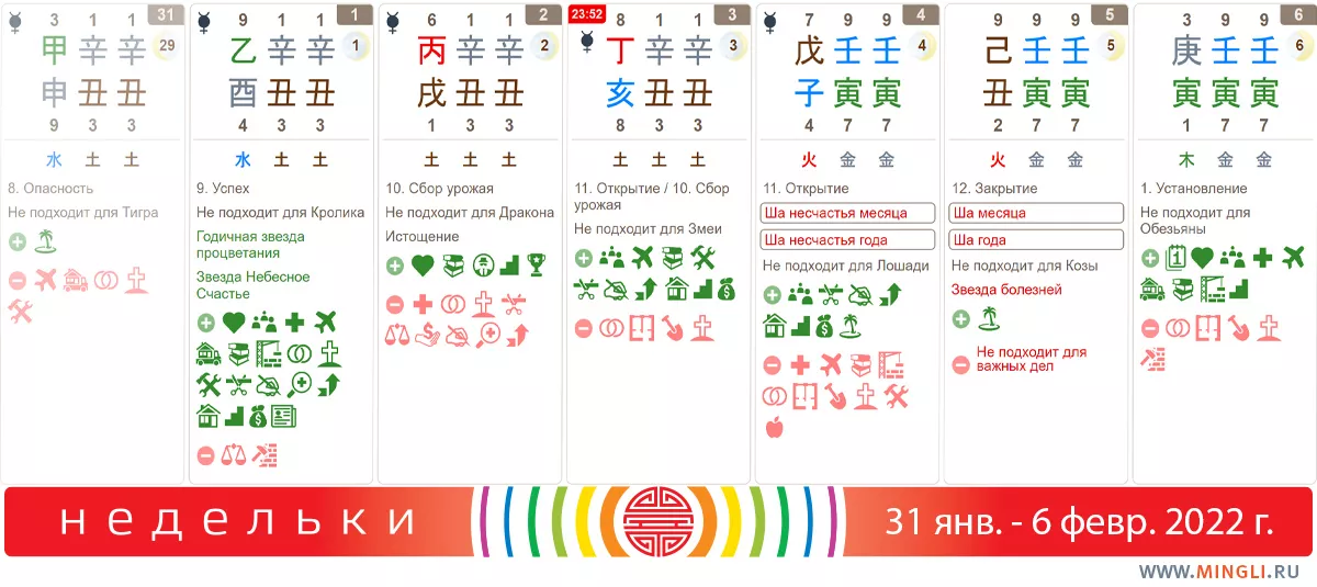 Ну что ж, встреча Бога Богатства 1 февраля по Лунному календарю, конец ретро Меркурия и начало года Тигра 4 февраля по Солнечному календарю – есть поводы отпраздновать). Да и дни большей частью хорошие – только в пятницу и субботу ша и ремонт затевать не стоит.