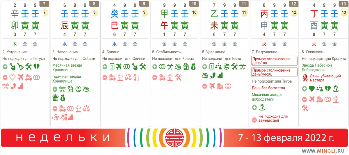 10 февраля, четверг. Отличный день и довольно сильный к тому же. Подойдет всем, кроме Крыс и тех, кому не полезно Дерево. Подойдет для строительных работ, переезда в новый дом, открытия нового дела или бизнеса, путешествий, свадьбы. Любых “долгоиграющих” дел, от которых вы хотите получать пользу стабильно.