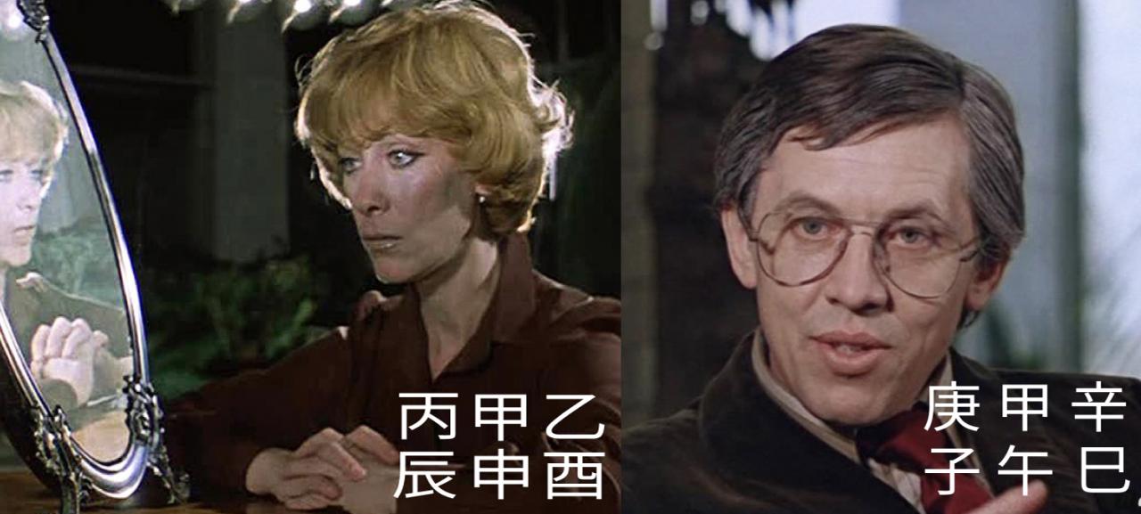 Помните, как с самого начала фильма Алёну преследует поклонник в летах – Сатанеев, которого сыграл Гафт? Его столп личности – иньский Металл на Змее, и по отношению к иньскому Дереву , это убийца на 7-й позиции, что для женщины означает также бойфренда, любовника. Сатанеев стремится покорить Алёну во что бы то ни стало. И сколько в фильме моментов с намёком на пикантность именно таких отношений: «Я вам кое-что дарил… На праздники, ну, цветы, например, и вы не возражали. Это дало мне право думать... Надеяться...» (с) Как можно увидеть Металл Инь на Змее и Дерево Инь на Свинье – столпы в полном столкновении друг с другом. И по факту, на съёмках разыгрался нешуточный конфликт: то Яковлева в словах запуталась, то реплику забыла, и в одной из сцен, не выходя из роли Сатанеева, Гафт начал душить её. На таком эмоциональном эпизоде оператор даже не выключил камеру. Многие их сцены снимали по раздельности.