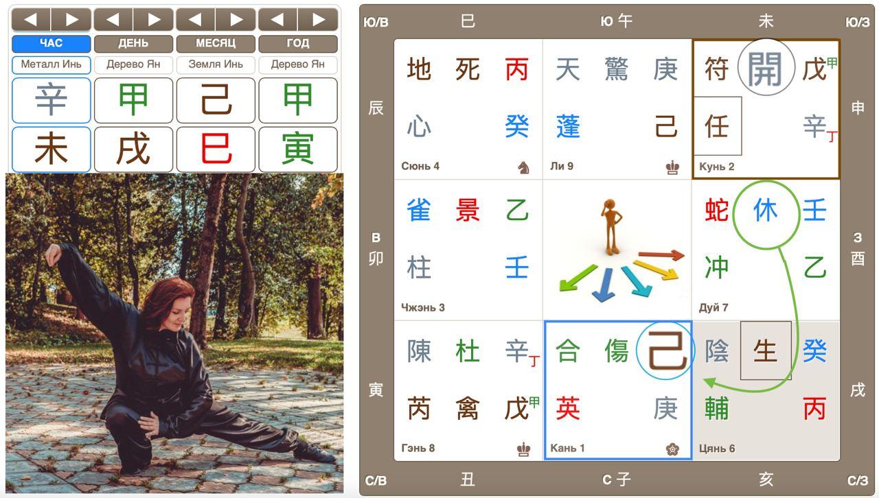 Извините, я тоже не поняла, почему у героини НС дня - это Дерево Ян, а во дворце Кань мы смотрим Землю Инь? когда нужно смотреть  Землю Ян во дворце Кунь, и ворота Открытие же у неё во дворце рождения???