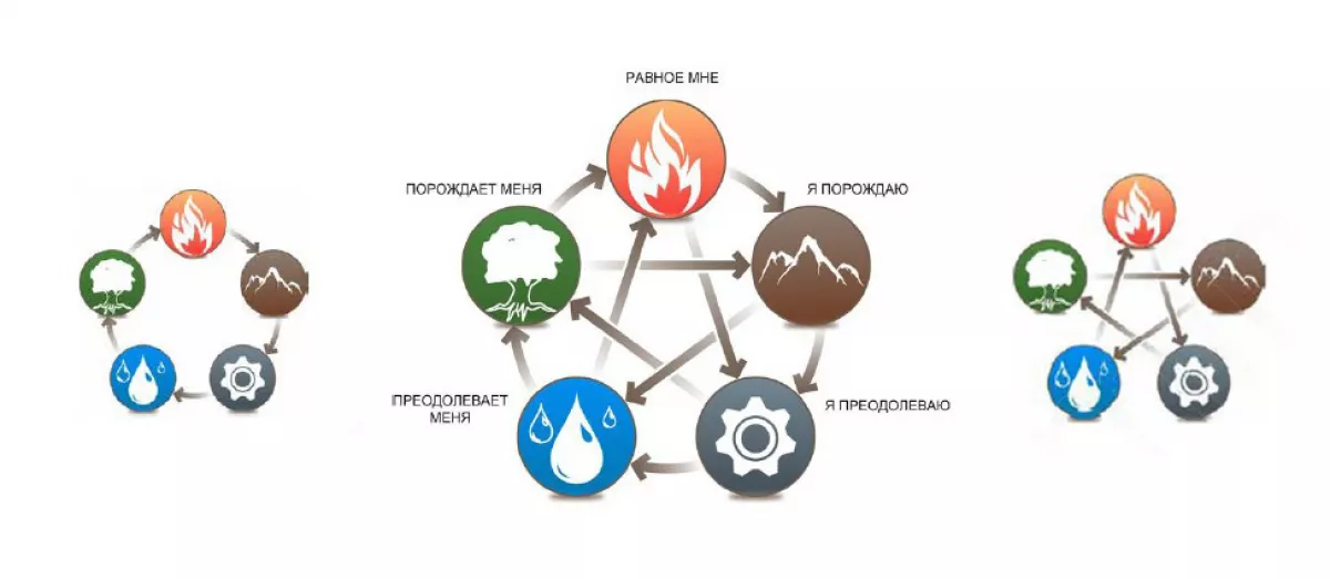 Чтобы разбираться в Бацзы, нужно знать несколько базовых концепций метафизики. Одна из них – У Син, 5 движений энергии или 5 элементов. 5 элементов и взаимодействия между ними – это азбука Бацзы. Дерево, Огонь, Земля, Металл и Вода – стихии, из которых «составлена» карта Бацзы человека. Недостаток или избыток какой-то из стихий влияет на характер и потенциал человека, его здоровья в первую очередь.