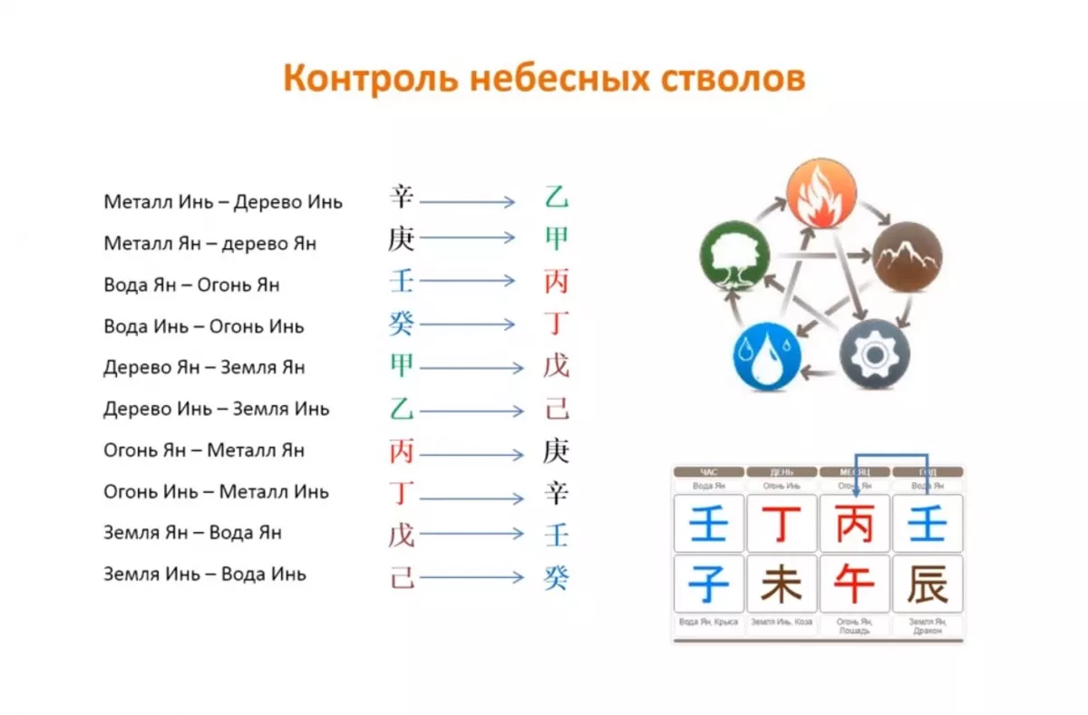 Зачем нужно понимать, кто с кем в карте сливается или находится в состоянии контроля? Это основы чтения карты Бацзы и анализа событий. Ведь каждый иероглиф – не только стихия, но и аспект жизни, родственник, уровень