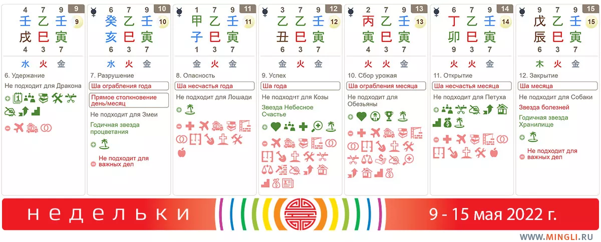 15 мая, воскресенье. Лучше валять дурака и отдыхать, так как важное планировать не стоит. День неблагоприятен для свадьбы, ремонта, начинания бизнеса и проектов, переезда в новый дом. Нарушение этого правила приносит повреждения дому и приводит к потере денег и собственности. Умели китайские мудрецы обрисовать перспективы… Отдыхаем.