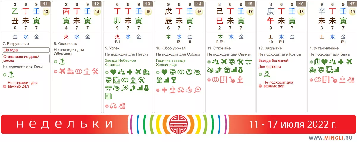 11 июля, понедельник. Чуть продляем выходные: медленно входим в работу, делаем только повседневное и неважное. Особенно это актуально для тех, у кого есть Бык и Коза в карте бацзы. Дальше вся оставшаяся неделька вполне симпатична.
