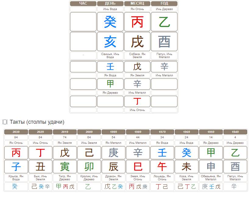 Дальше начинаются вопросы по другим элементам. В небесных стволах карты есть Огонь и Дерево, ослабляющие элементы для Воды, значит, небесные стволы ослабляют ГД. А земные ветви Свинья и Петух поддерживают Воду. Так какая это карта? Сильная или слабая? В карте Никиты Сергеевича мы не знаем час; возможно, это бы прояснило ситуацию. Но ведь на практике часто встречаются и карты, где час известен, а ясности с полезными элементами нет. Как же тогда быть? На помощь нам приходит анализ событий жизни. Но как обычно делают начинающие?