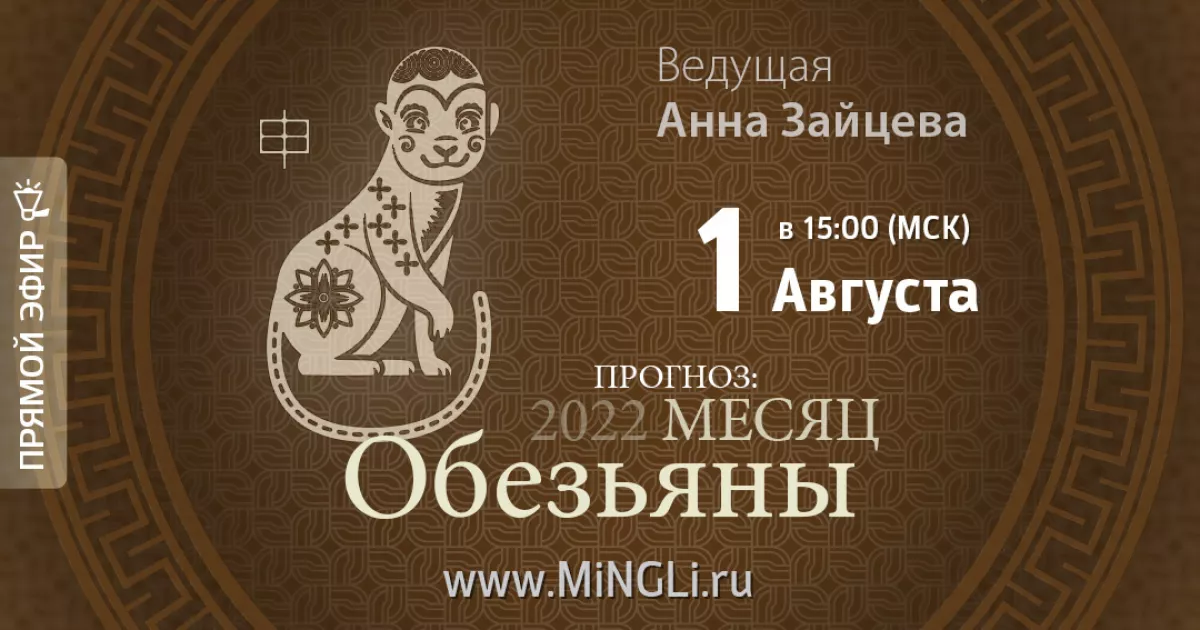 Приглашаем на эфир «Бацзы: прогноз на месяц Обезьяны (август) 2022 года» (прогноз по бацзы, прогноз на август 2022)