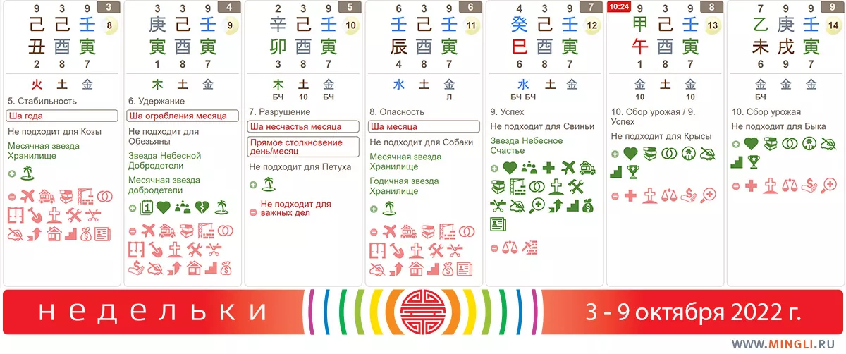Наконец-то закончился ретроград, а значит, можно планировать серьезные начинания и мероприятия. Например, на пятницу. 8 октября наступает месяц Собаки и все подробности о нем вы сможете почитать в прогнозе на месяц. От себя хочу добавить, что энергии сентября и октября в чем-то схожи: это Металл и Земля, однако, теперь Металл выходит наверх, в небесные стволы, а Земля представлена Собакой. Месяц может быть не самый простой с эмоциональной точки зрения.