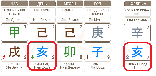 Если у вас в карте уже есть Свинья (годы рождения 1971, 1983, 1995, а также, если вы родились в ноябре, или в дне, часе есть Свинья), то это ситуация «самонаказания», она создает вероятность того, что вы можете сами себе создавать сложности, совершать поспешные поступки, о которых будете потом сожалеть. Особенно если вам Вода не полезна, для вас месяц может быть довольно эмоциональный, внутри может нарастать какое-то напряжение, беспокойство, непонятные предчувствия, депрессивность. Защита – продуманные взвешенные решения и действия, осознанные поступки, старайтесь не спешить при принятии решений, не совершайте импульсивных покупок. Если Свинья стоит в доме брака, можете сами испортить отношения со своим партнером. Обратите внимание на 18 и 30 ноября, это дни с «самонаказанием».