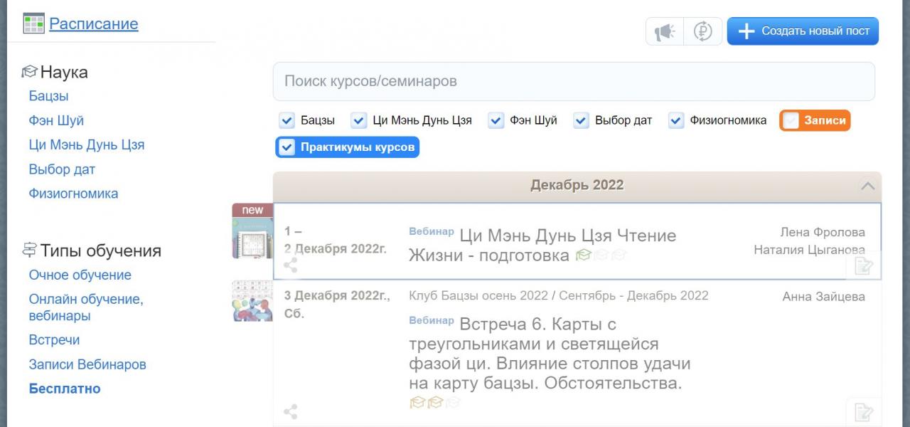 Кстати, если наше Расписание для вас слишком большое и вы теряетесь в нем – можно всегда настроить его так, чтобы видеть только нужное, воспользовавшись галочками. «Записи» – это видео курсы без конкретной даты, «Практикумы» – практические занятия текущих курсов.