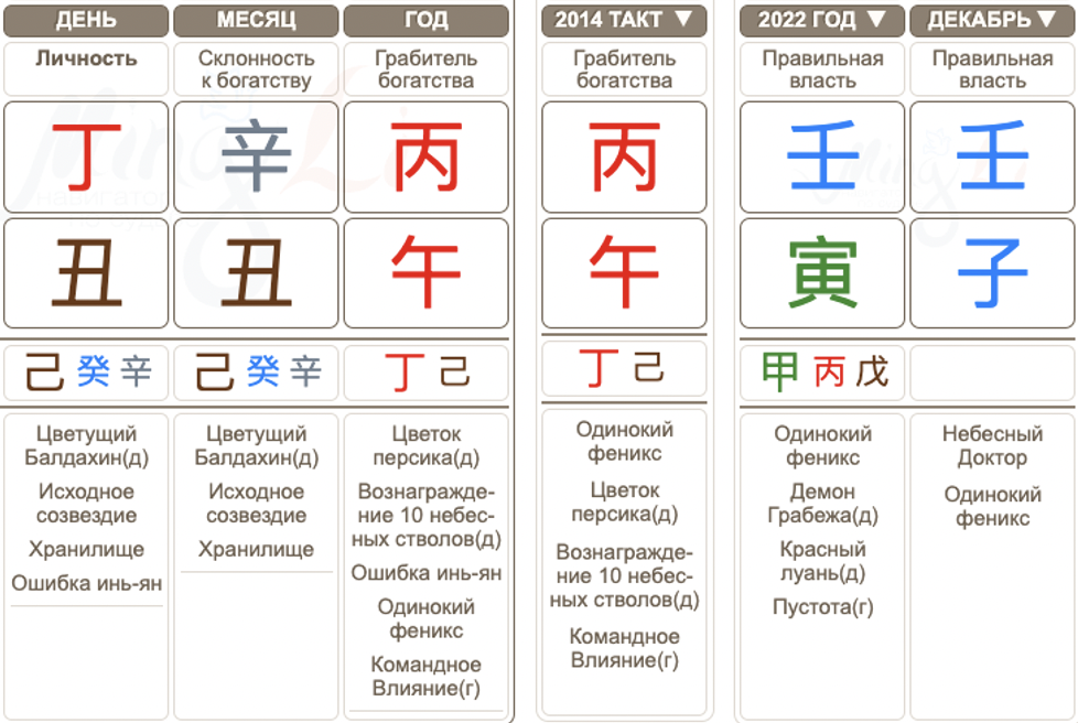 Теперь часть вторая. 8 декабря 2022 года, в год Водяного Тигра 寅, с приходом месяца Крысы усиливается Правильная Власть и полезный Ресурс (кстати, Ресурс связывают и с образом Родины тоже). В тот же момент карта вся приходит в движение: сталкиваются Вода и Огонь, Крыса тянет к себе Быка , Тигр очаровывает Лошадь . Крыса, Лошадь, Тигр – много активности на «единицу местности». Одновременно показывается Правильная Власть аж в двойном формате ( Вода Ян в году и месяце). Как сказал Виктор Бут: «Все произошло быстро, пришли, сказали «собирайся» и увезли в Россию». Вот так вот, с приходом сильного Дерева и Воды, своих полезных элементов, он получил свободу.