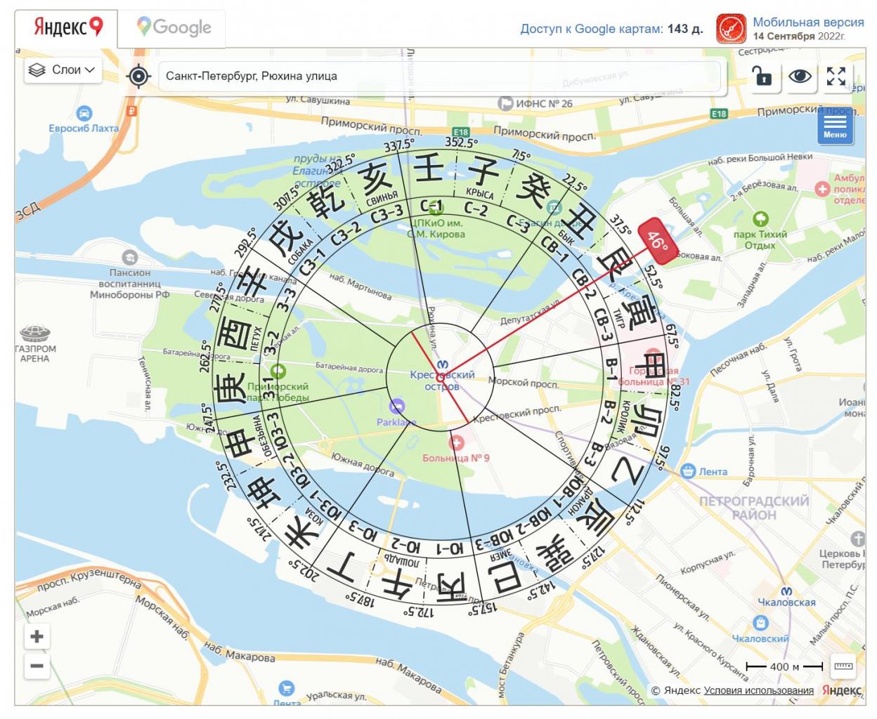 2. Наметьте конечную точку в нужном секторе от вашего дома или офиса (направление тоже указано в тексте).