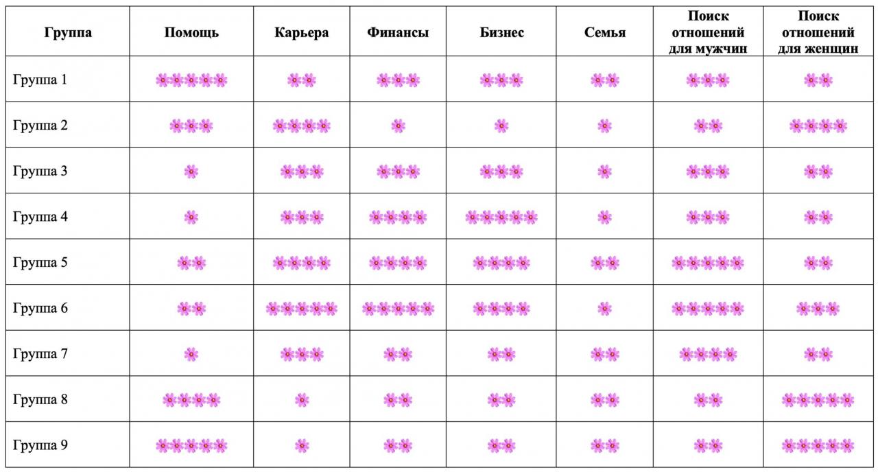 Для наглядности мы обобщили прогноз и сделали таблицу, где показали уровень удачи в той или иной сфере.