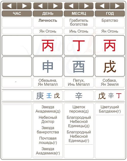 Т.к. карта женская, то считается еще и так: женщины представлены Небесными Стволами, а мужчины Земными Ветвями (учитываем то, каким элементом представлен партнер в ЗВ дня). Т.е. не только как Власть можем смотреть, но еще и таким образом.