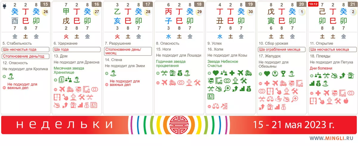 17 мая, среда. День столкновения, поэтому для важных дел не подойдет. Сегодня в зоне риска Свиньи и Змеи. Берегите себя, ведите себя аккуратнее за рулем и во время занятий спортом.