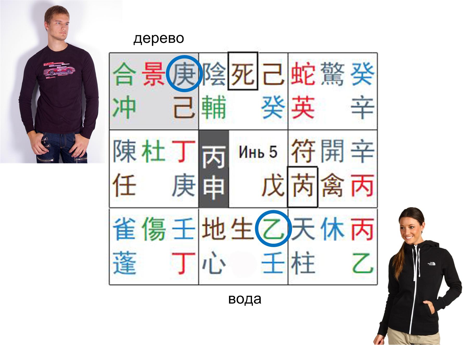 Такой же шанс виден, если Янский Металл и Иньское Дерево попали во дворцы с одинаковыми стихиями. А вот если мужчина и женщина находятся во дворцах, которые контролируют друг друга – металл и дерево, вода и огонь – то это говорит о трудностях и конфликтах.