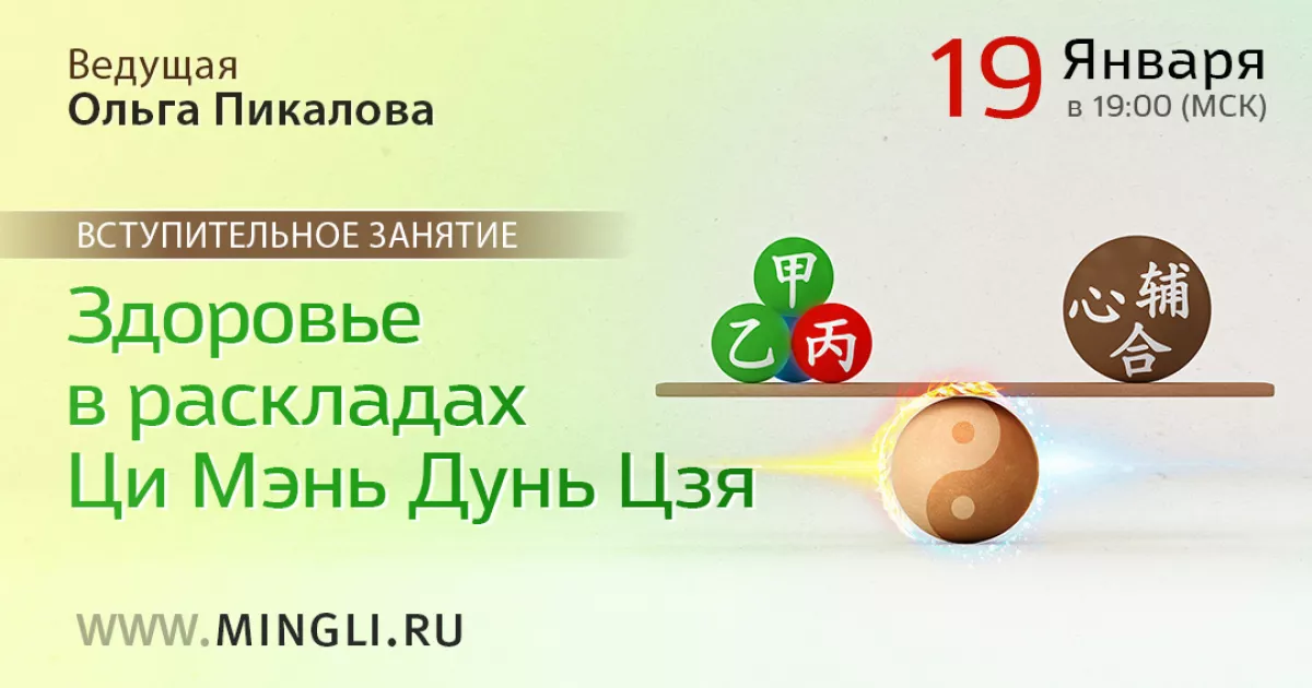 Приглашаем вас 19 Января 2024 в 19:00 (по Мск) на открытый вебинар «Здоровье в раскладах Ци Мэнь Дунь Цзя»