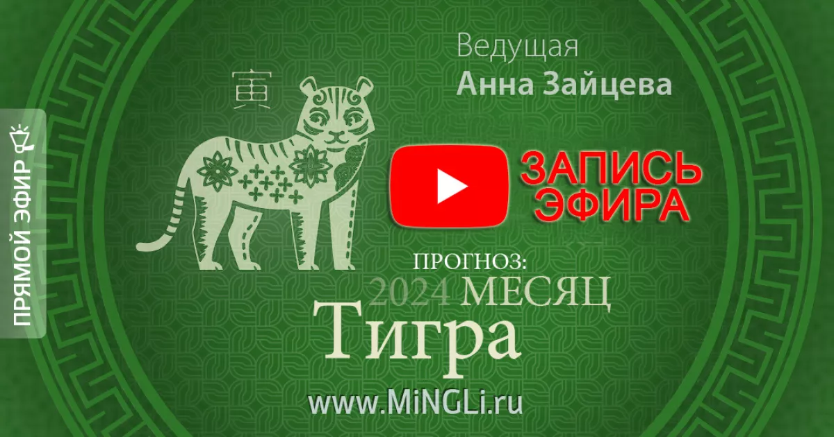 26 Января 2024 состоялся прямой эфир с Анной Зайцевой на тему «Бацзы: прогноз на месяц Тигра (февраль) 2024 года».