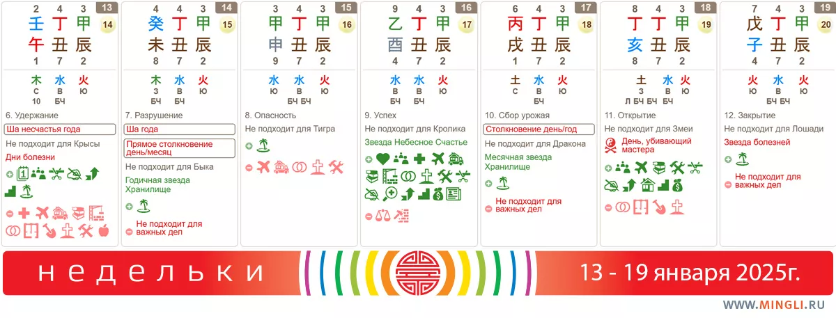 14 января, вторник. Не самый лучший для начинаний: столкновение приносит конфликт, ша замедляет процесс и привносит ошибки. Тем, у кого в карте Бацзы есть Коза и Бык, стоит вести себя благоразумно, не лезть на рожон, но и не копить обиды. Именно сегодня обсуждать наболевшее как раз не стоит – лучше запишите то, что думаете, в телефон, а потом, в более удобный момент обсудите свои переживания с оппонентом, используя «я-послание». Кстати, некоторым людям удобнее писать друг другу в ситуации конфликта, чем общаться голосом. Травмоопасность остается повышенной, особенно на дороге.