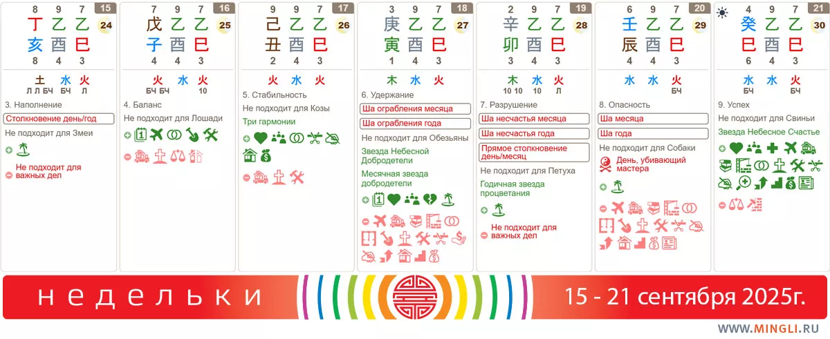 Рекомендации на неделю 15 — 21 сентября (Недельки, прогноз на неделю, Бацзы)