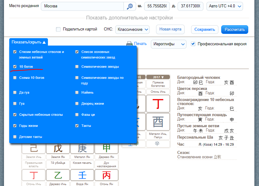 Чтобы выяснить, какие Боги есть в карте рождения, не нужны сложные таблицы и расчеты. Вы можете зайти на калькулятор бацзы на нашем сайте и построить карту, а система сама рассчитает вам 10 Богов и напишет их названия.