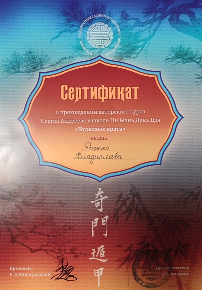 с 2014 года изучаю Бацзы, 2016 Фен Шуй, 2019 Ци Мень Дунь Цзя, 2024 диагностика в ТКМ.