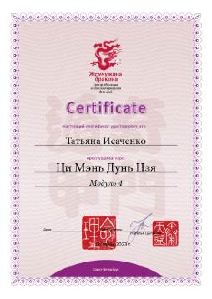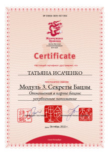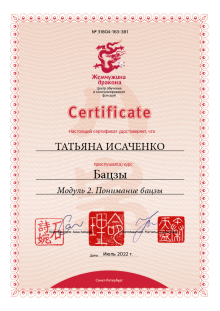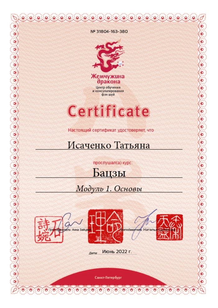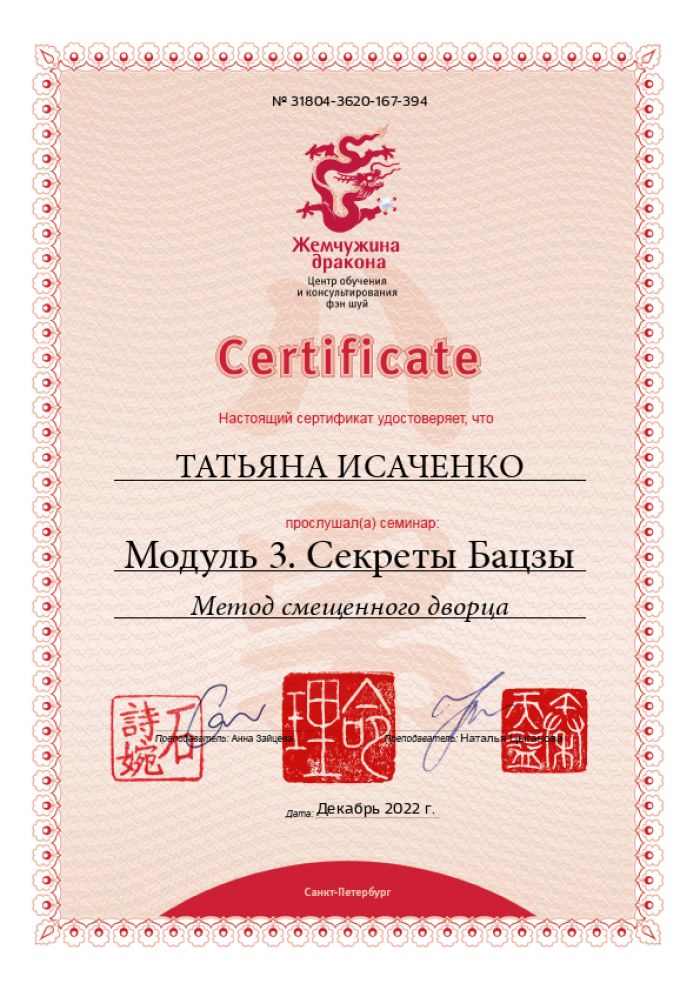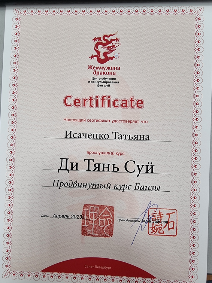 Сертифицированный консультант по Бацзы от центра обучения и консультирования "Жемчужина Дракона"